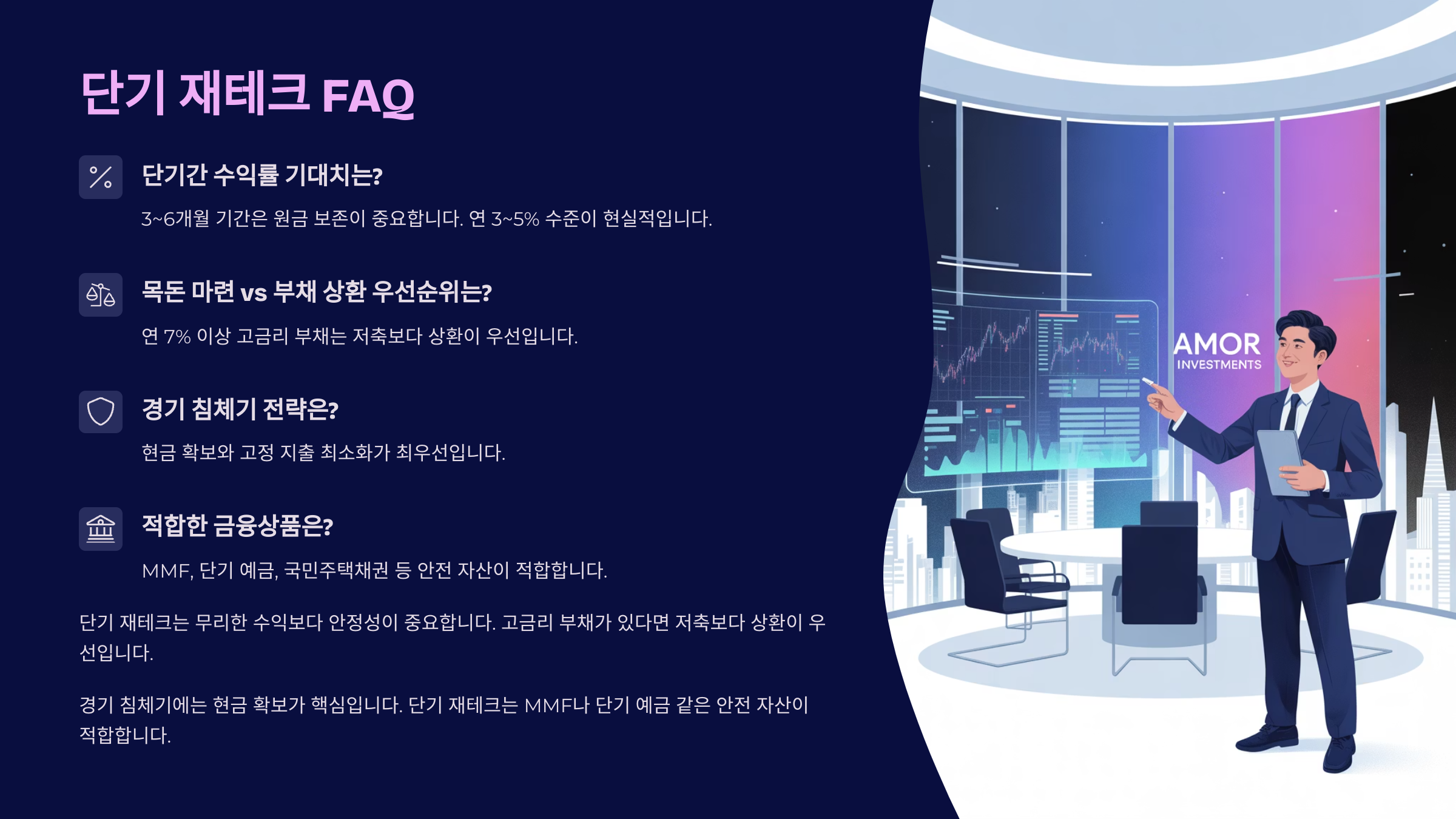 단기 재테크는 말 그대로 짧은 시간 안에 자산을 늘리는 걸 목표로 해요. 특히 3개월이라는 제한된 기간 안에서는 장기 투자보다 ‘확실한 계획과 실행’이 가장 중요하답니다.